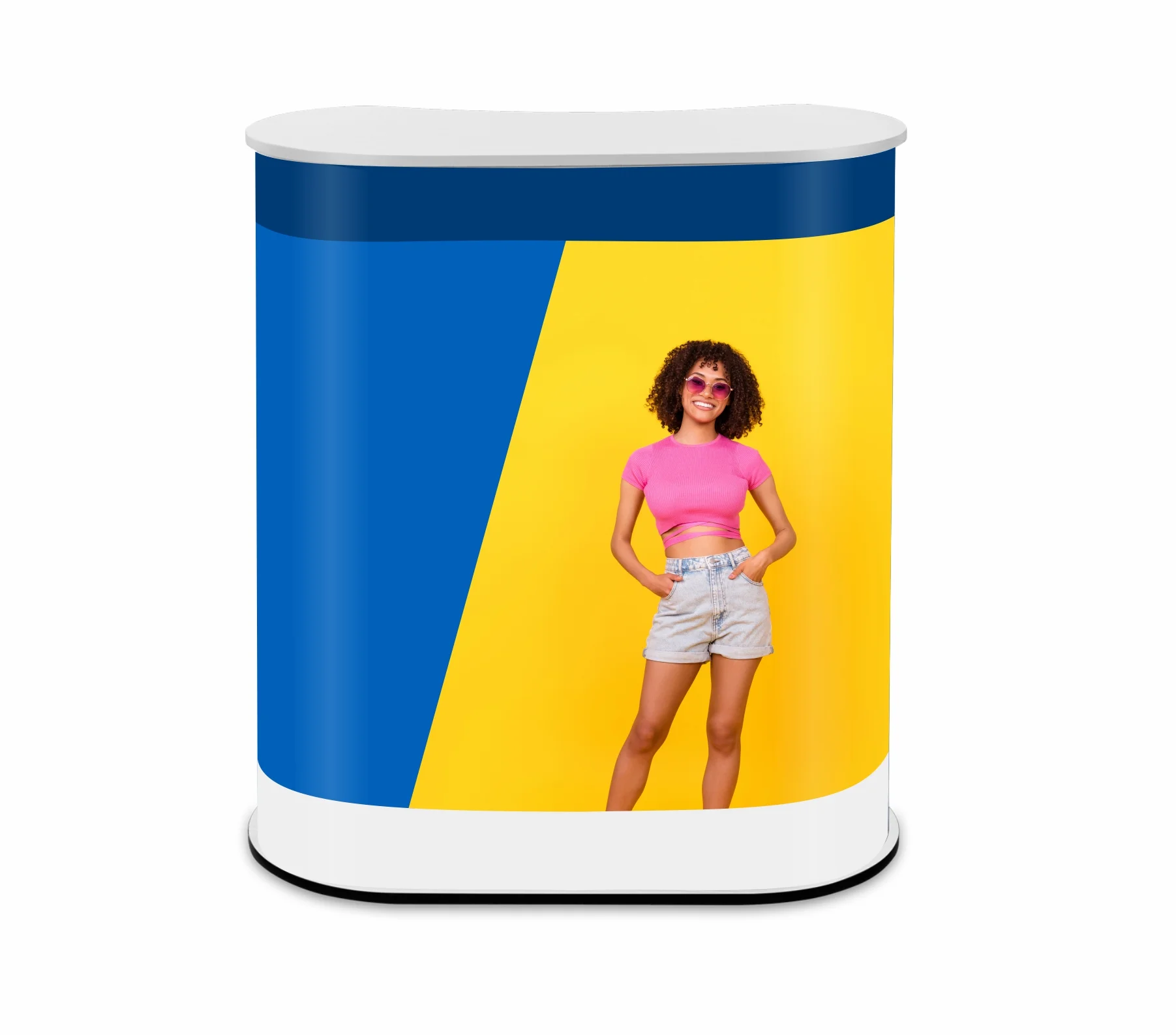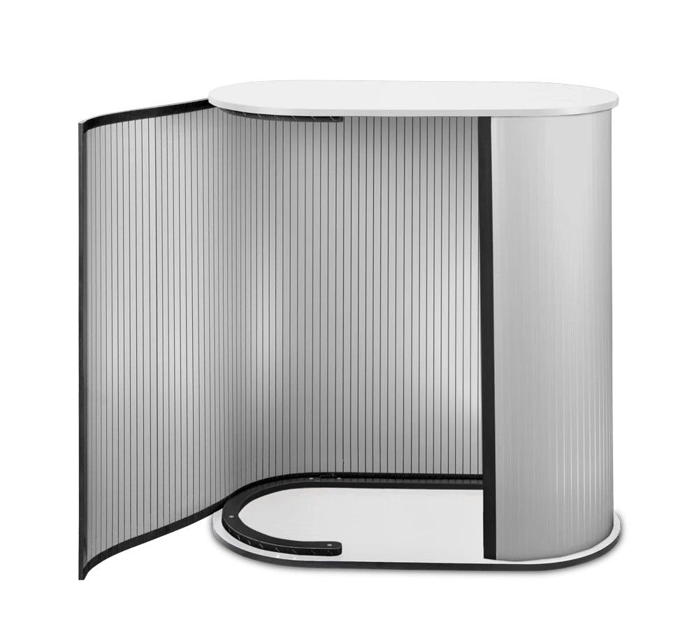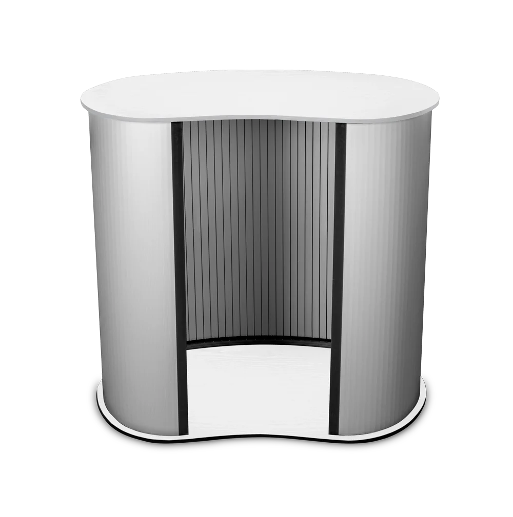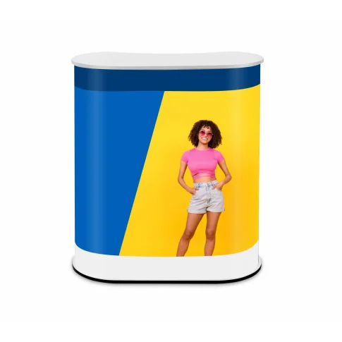 The arch stand is one of the most popular counter systems. It is characterized by easy and quick installation in which the tabletop and base are attached to a PVC panel with rigid Velcro. Sturdy construction allows you to load the top with advertising materials or refreshments. The stand will work well wherever we need to present our products, greet customers, or give a speech. It is a universal product perfectly complementing other systems from our offer.