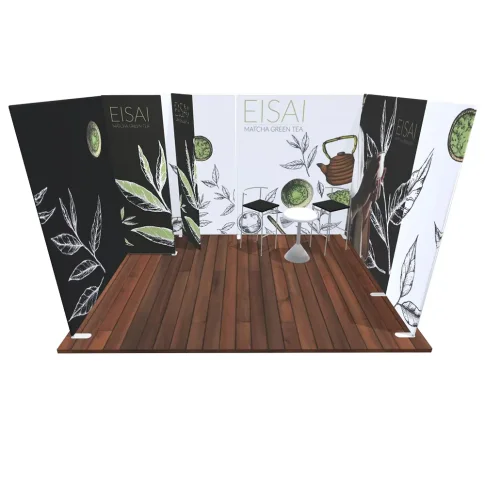 The Modulate series consists of a set of frames made of aluminium tubes onto which textile graphics are applied. These frames can be easily connected using strong magnets located inside each structure. The MagLink system, with its strong magnets working in a 360° radius, makes the Modulate frames connect to each other very easily without the use of any external connectors.