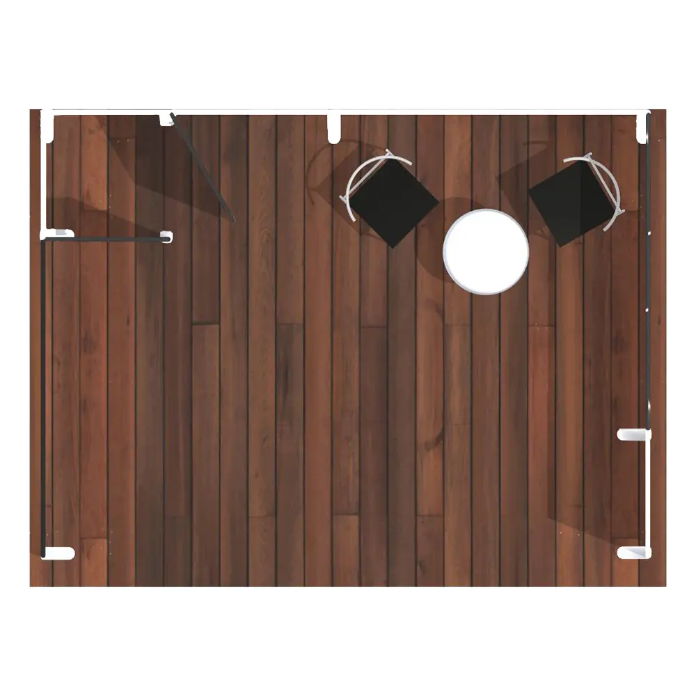 The set comprises: three 200 cm modules, four 80 cm modules, a 100 cm module, a door module and dedicated transport bags. The floor is not part of the equipment and is not included in the stand.