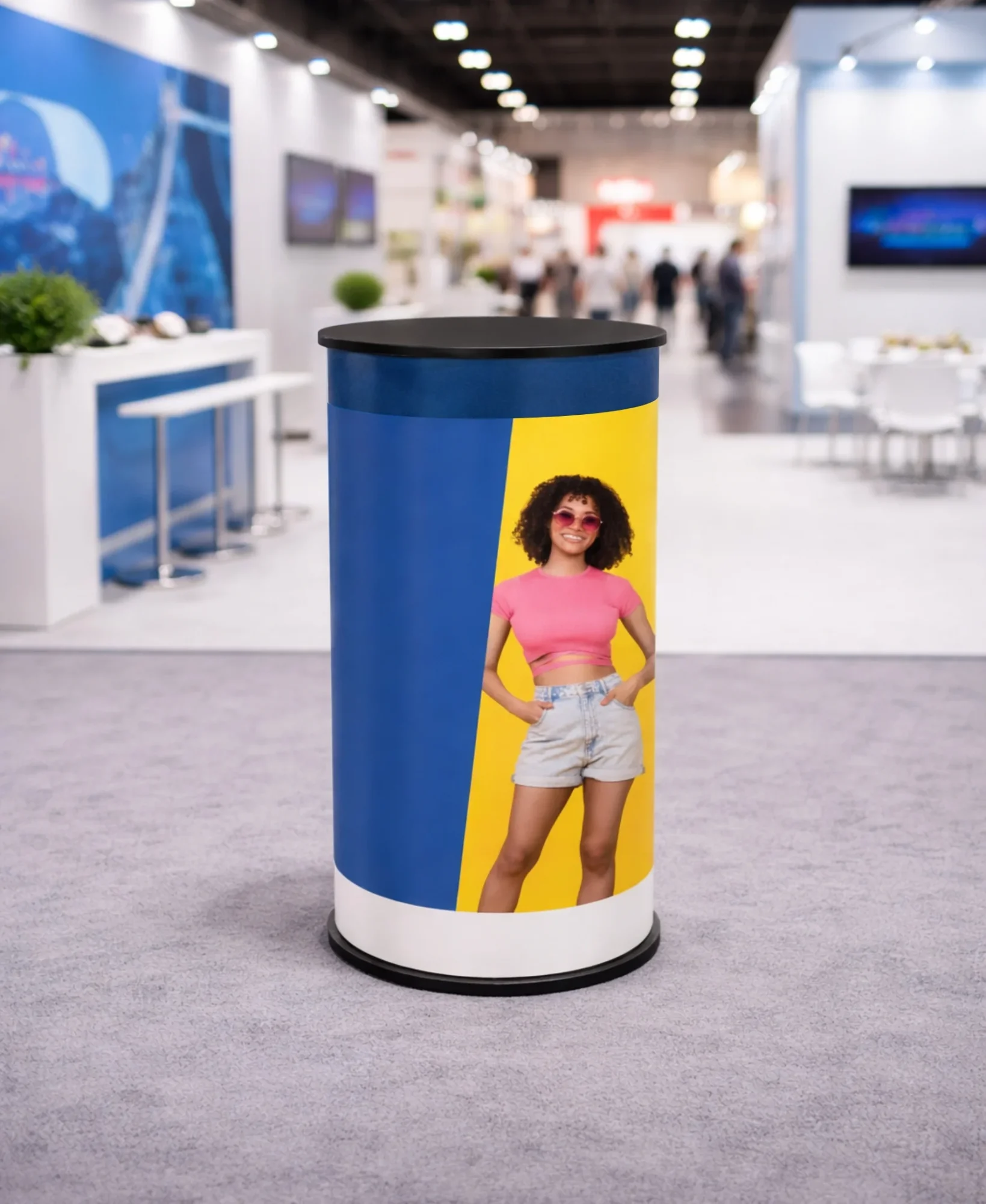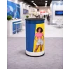 The Small Stand is a compact and handy version of this system. It features an easy and quick assembly in which the tabletop and base are attached to a PVC panel with rigid Velcro. The sturdy design allows you to load the top with advertising materials or refreshments. The tribune will prove useful wherever you are limited by the booth area, and where you need to present your products, greet customers, or give a speech. It is a universal product perfectly complementing other systems from our offer.
