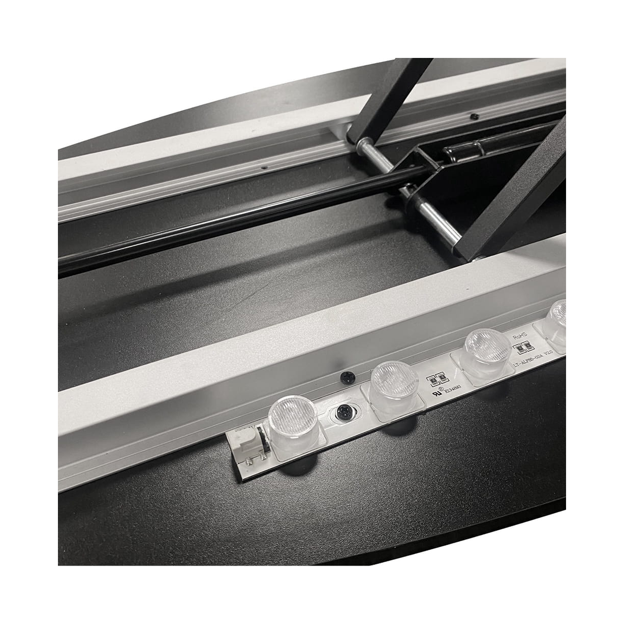 Przemyślany system umożliwia błyskawiczne rozkładanie i składanie, a paski ledowe zapewniają równomiernie i intensywne podświetlenie.