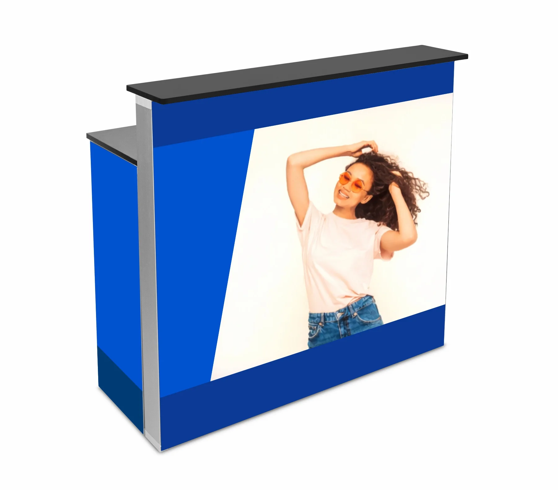 Jej złożenie nie wymaga użycia narzędzi i zajmuje dosłownie kilka sekund. Mocowanie grafiki za pomocą taśmy silikonowej to z kolei pewność błyskawicznego i prostego montażu wydruku. Dzięki wmontowanym żarówkom LED cały front lady jest idealnie doświetlony i z daleka zwraca uwagę przechodniów.