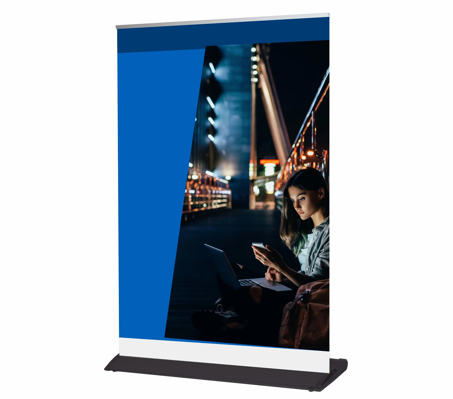 Roll-Up Exclusive Black posiada bardzo elegancką i stylową konstrukcję w kolorze czarnym, a dzięki odpowiedniej szerokości kasety pozbawiony jest nożek podpierających. Rollup ten posiada futerał transportowy z możliwością przewieszenia go przez ramię. Jest to produkt klasy premium, który przy zastosowaniu kilku tych systemów obok siebie może stworzyć samodzielne stoisko targowe lub ściankę reklamową. Doskonała stabilność, wygoda użytkowania oraz wygląd konstrukcji to cechy dzięki którym nie można przejść obok tego systemu obojętnie.