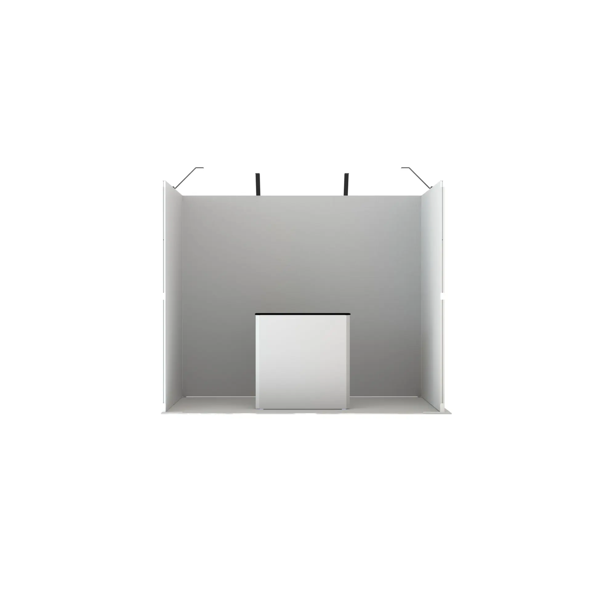 W skład zestawu wchodzą: siedem modułów 95x240 cm, zestaw dedykowanych łączyn i konektorów, lada Formulate Prostokąt oraz torby transportowe. Podłoga nie jest elementem wyposażenia i nie wchodzi w skład stoiska.