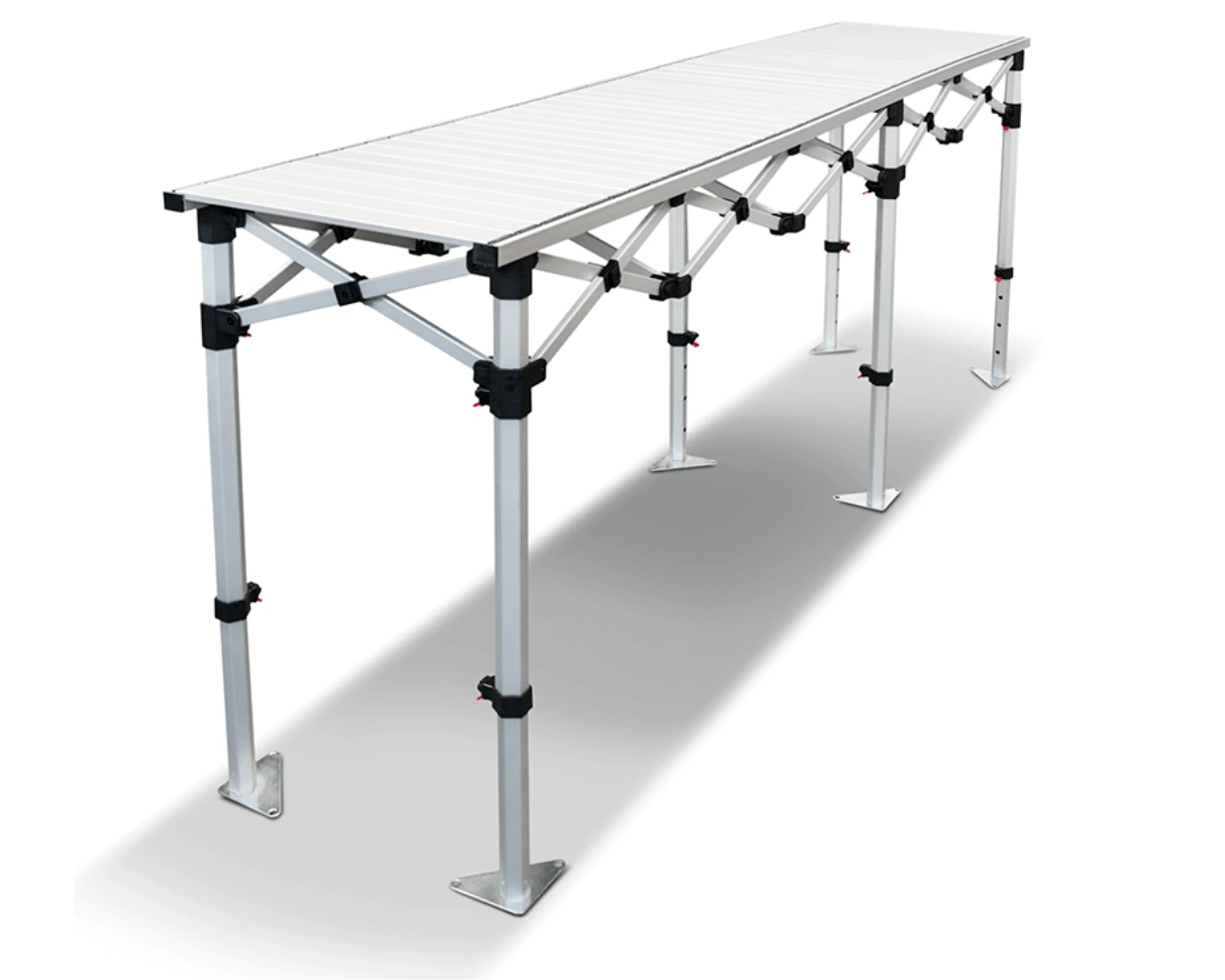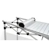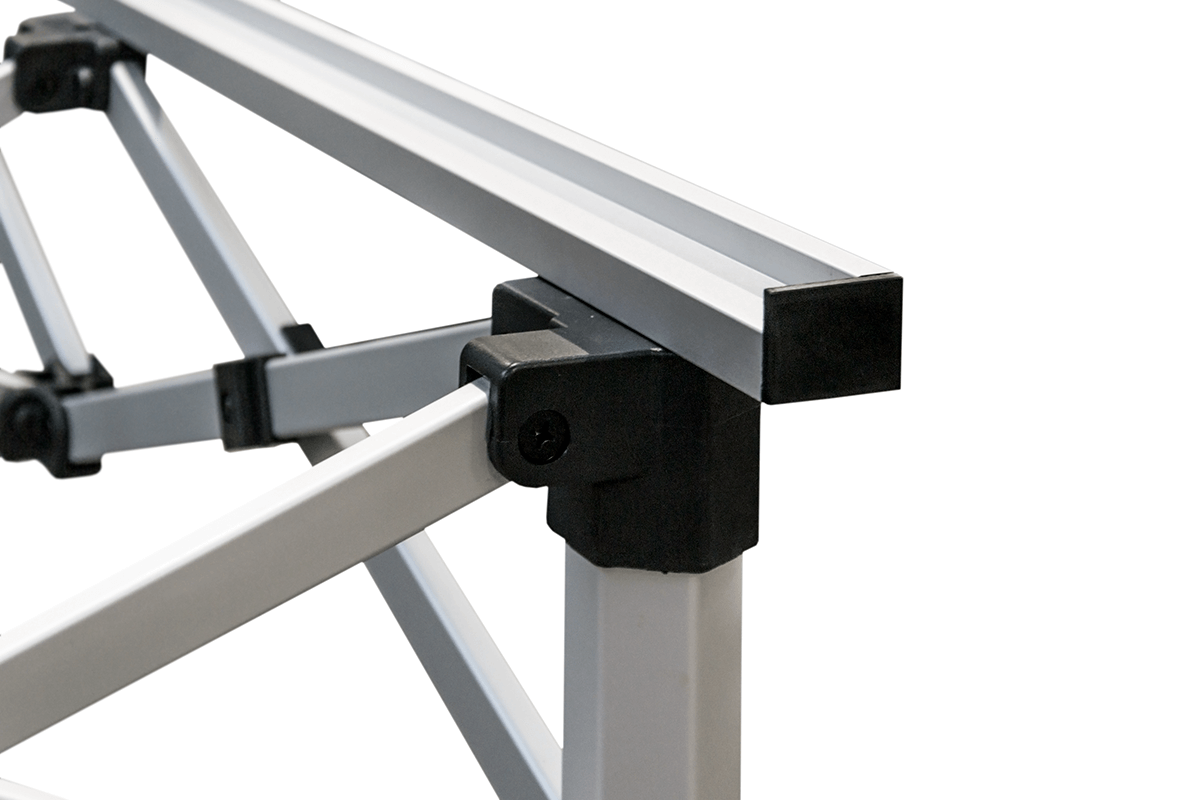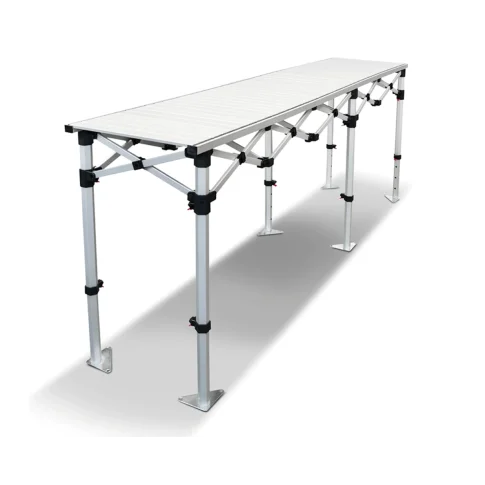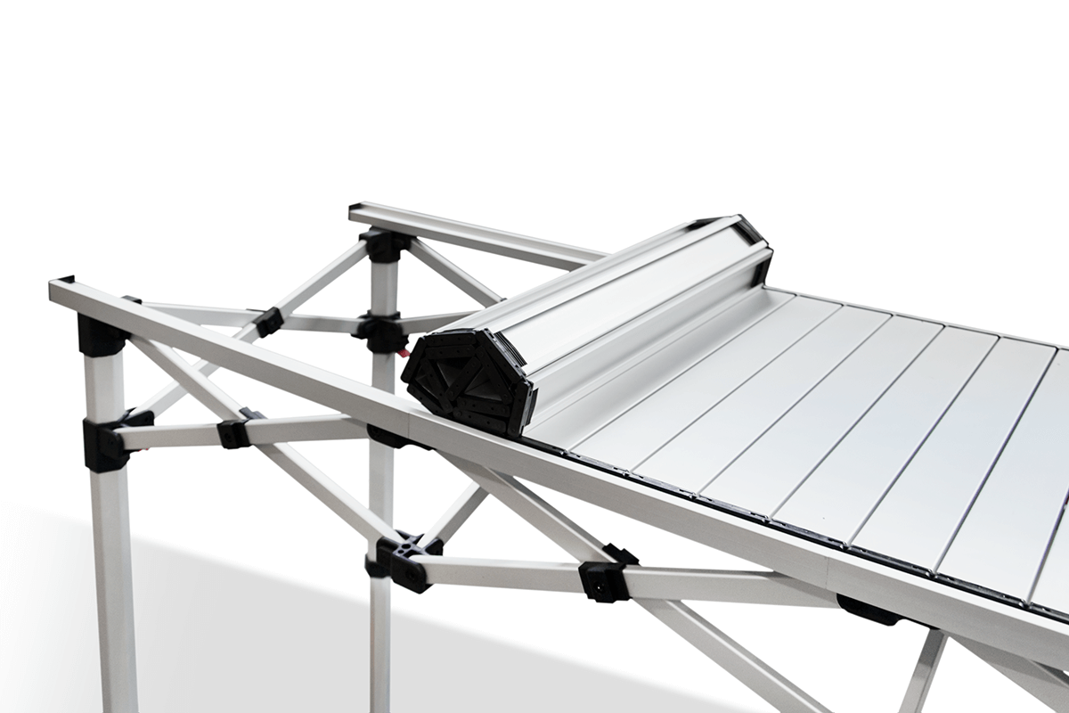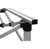 Stół eventowy regulowany to praktyczne rozwiązanie stworzone z myślą o wygodzie użytkowania podczas eventów, targów czy prezentacji plenerowych. Wykonany z lekkiego, a zarazem trwałego aluminium, łączy solidność z mobilnością. Konstrukcja stołu jest składana, a blat można zwinąć, dzięki czemu cały zestaw mieści się w poręcznej torbie z uchwytami, ułatwiającej transport i przechowywanie. Stoły dostępne są w trzech rozmiarach, co pozwala dopasować je do różnych zastosowań. Dzięki regulowanym nogom wysokość stołu można ustawić na kilku poziomach, a dodatkowa możliwość indywidualnej regulacji każdej nogi pozwala na stabilne ustawienie nawet na nierównym podłożu. Opcjonalny nadruk na obudowie stołu nie tylko zakrywa ramę, ale także tworzy dodatkową przestrzeń do przechowywania pod blatem.