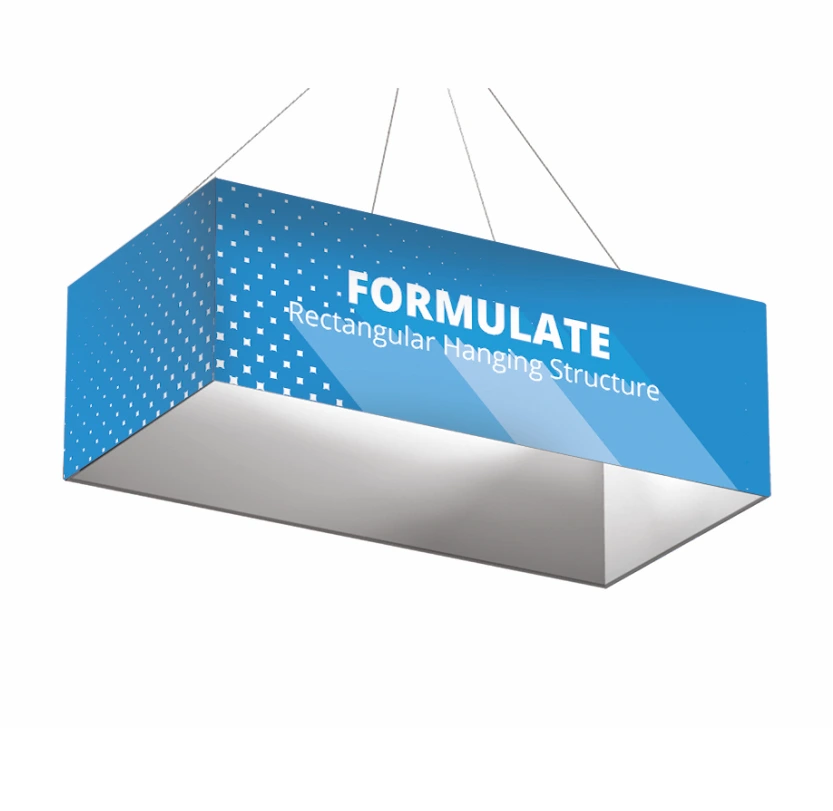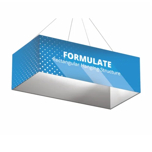 Formulate podwieszany Prostokąt jest idealnym uzupełnieniem stoiska wystawienniczego na wszelkiego rodzaju targach, imprezach promocyjnych.