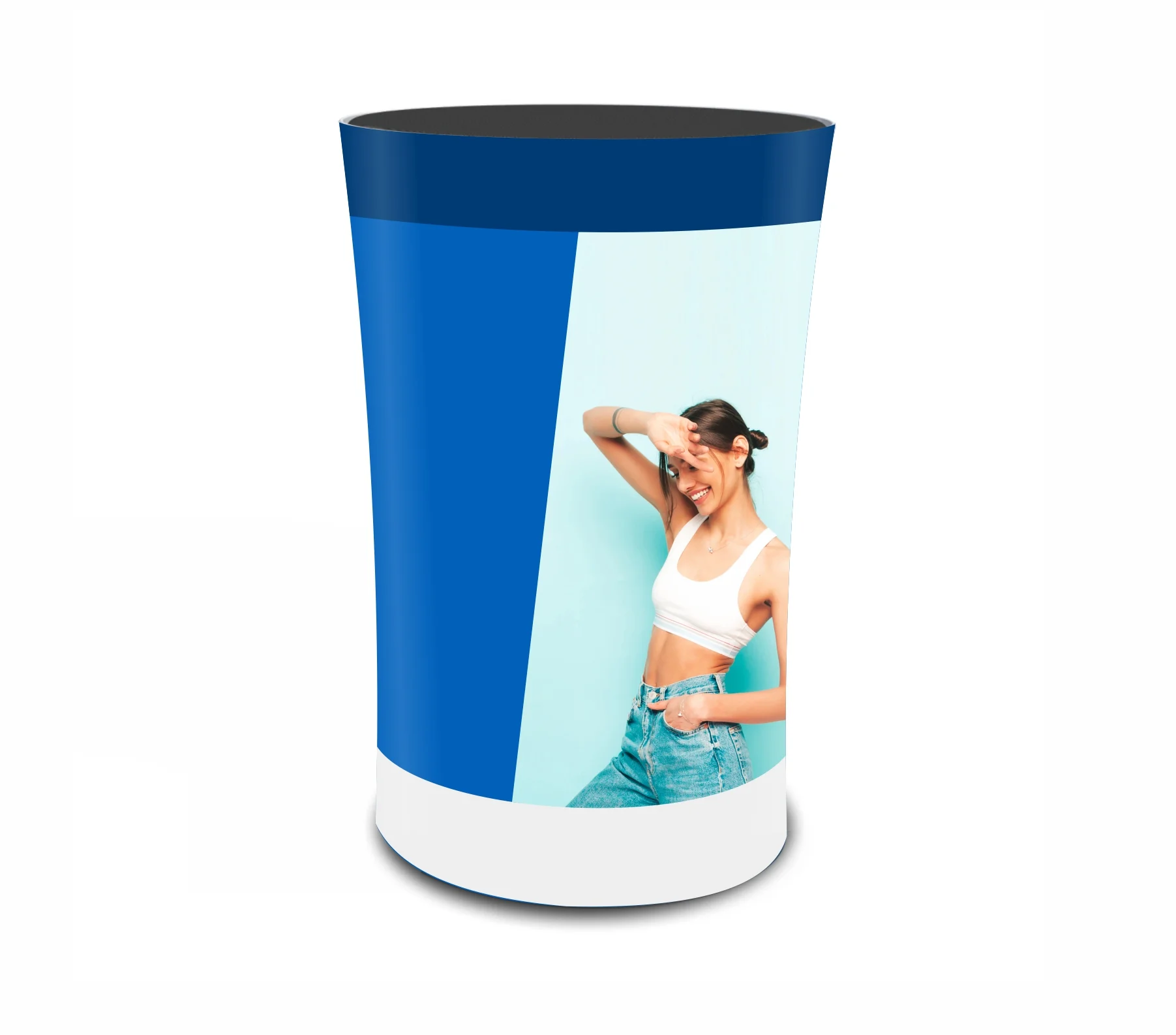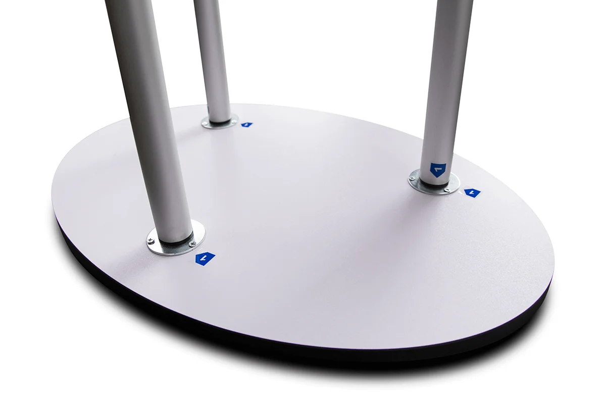 Trybunka Formulate Owalna to efektowna trybunka z wydrukiem tekstylnym gwarantującym niepowtarzalne przedstawienie grafiki. Konstrukcję stanowią trzy aluminiowe nogi łączące się z blatem "na klik". Grafikę montujemy poprzez naciągniecie jej na blat i zamocowanie za pomocą silikonowej wszywki, należy dodać, że jest to intuicyjna i nieskoplikowana czynność . Wydruk staje się dzięki temu odpowiednio naprężony i nie marszczy się. Wytrzymała konstrukcja trybunki pozwala na obciążenie jej materiałami reklamowymi lub poczęstunkiem. Trybunka sprawdzi się wszędzie tam gdzie musimy prezentować swoje produkty, witać klientów, lub prowadzić przemówienie.