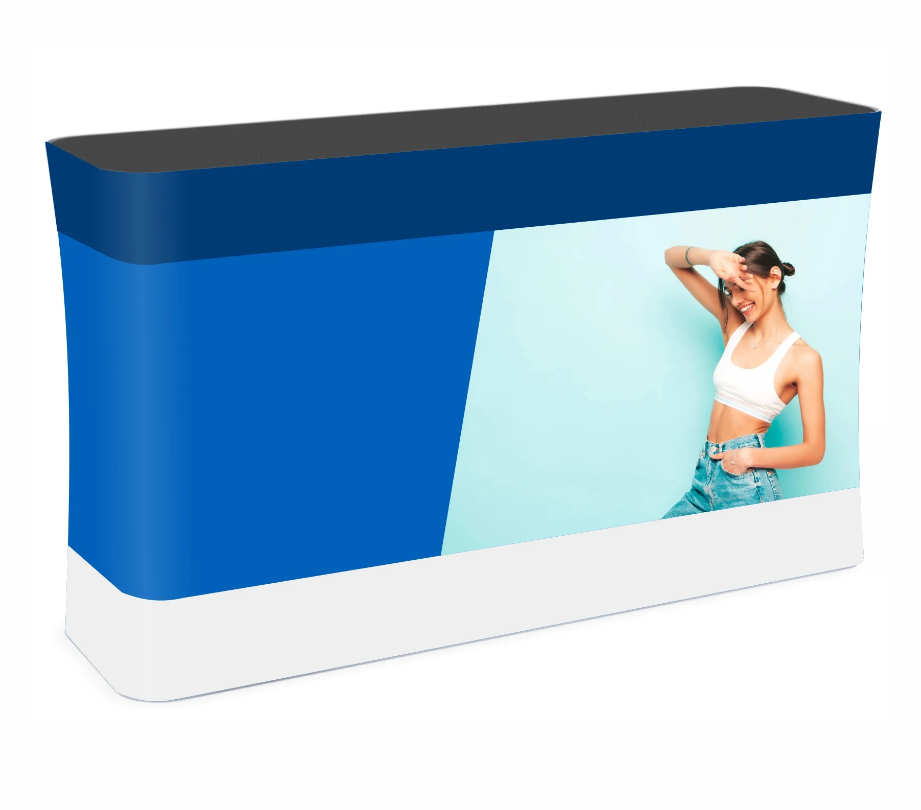 Trybunka Formulate XL to efektowna trybunka z wydrukiem tekstylnym gwarantującym niepowtarzalne przedstawienie grafiki. Konstrukcję stanowią trzy aluminiowe nogi łączące się z blatem "na klik". Grafikę montujemy poprzez naciągniecie jej na blat i zamocowanie za pomocą silikonowej wszywki, należy dodać, że jest to intuicyjna i nieskoplikowana czynność . Wydruk staje się dzięki temu odpowiednio naprężony i nie marszczy się. Wytrzymała konstrukcja trybunki pozwala na obciążenie jej materiałami reklamowymi lub poczęstunkiem. Trybunka sprawdzi się wszędzie tam gdzie musimy prezentować swoje produkty, witać klientów, lub prowadzić przemówienie.